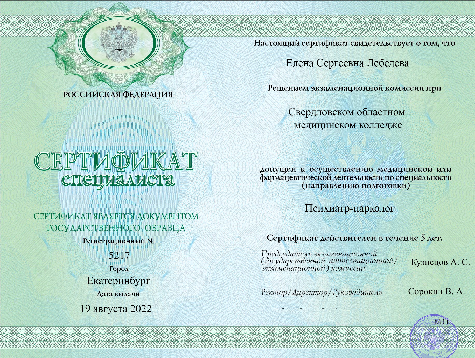 Елена Сергеевна Лебедева врач нарколог клиники доктора Стукаловой в Барыше